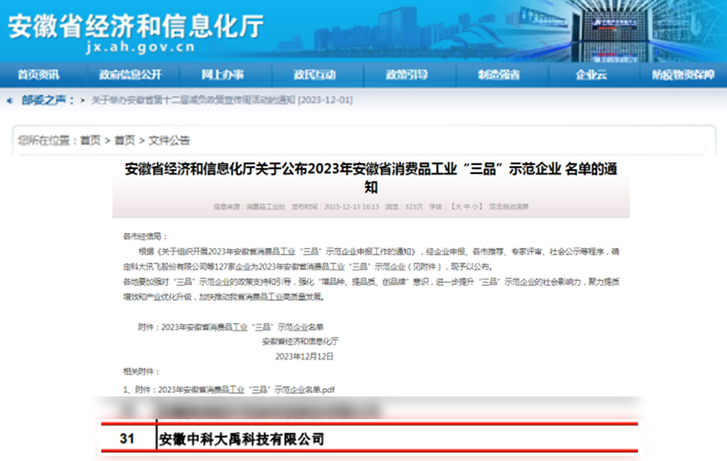 • 評定為2023年度國家知識產權優勢企業 入選2023年安徽省技術創新示范企業名單